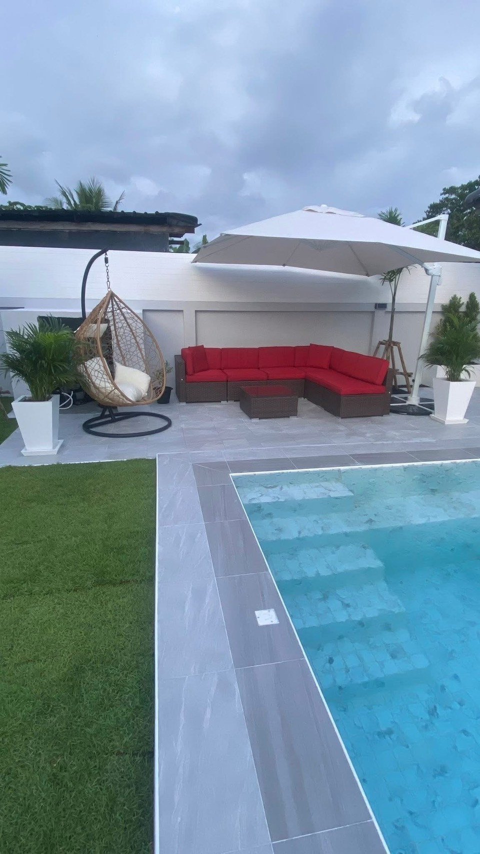 - ปูหญ้าจัดสวน , ชุดโซฟาเอ้าท์ดอร์ริมสระ
