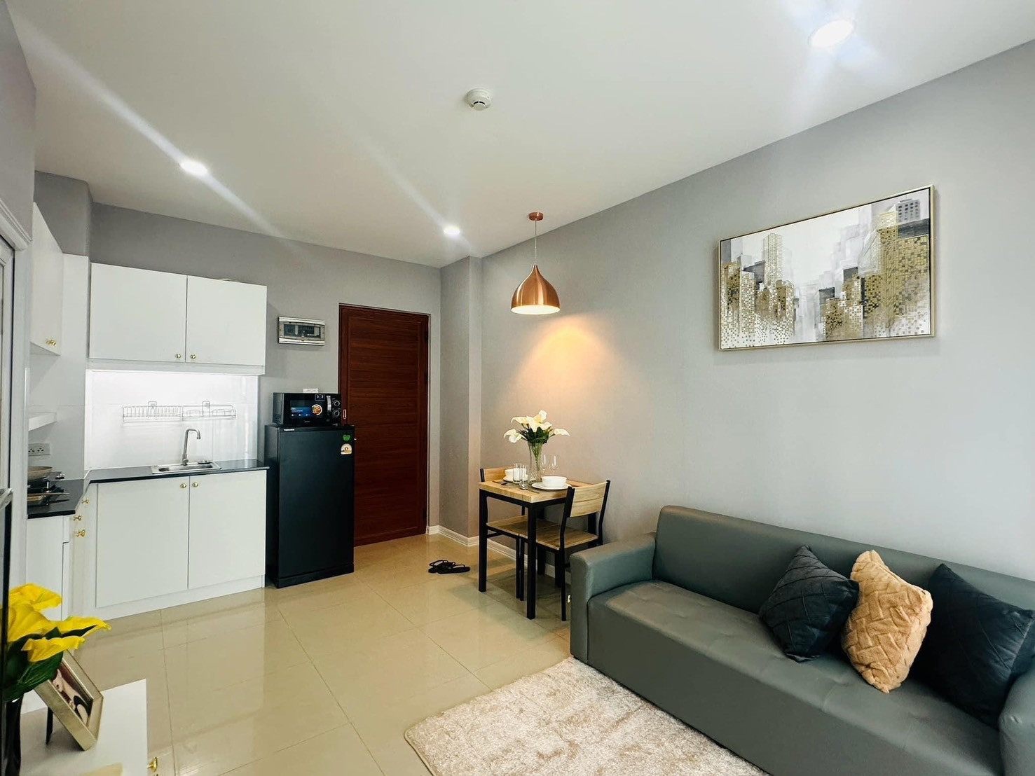 - เฟอร์ นิเจอร์ - โซฟา 2-3 ที่นั่ง - โต๊ะทานอาหาร 2 ที่นั่ง - เตียงนอน พร้อม ชุดเครื่องนอน