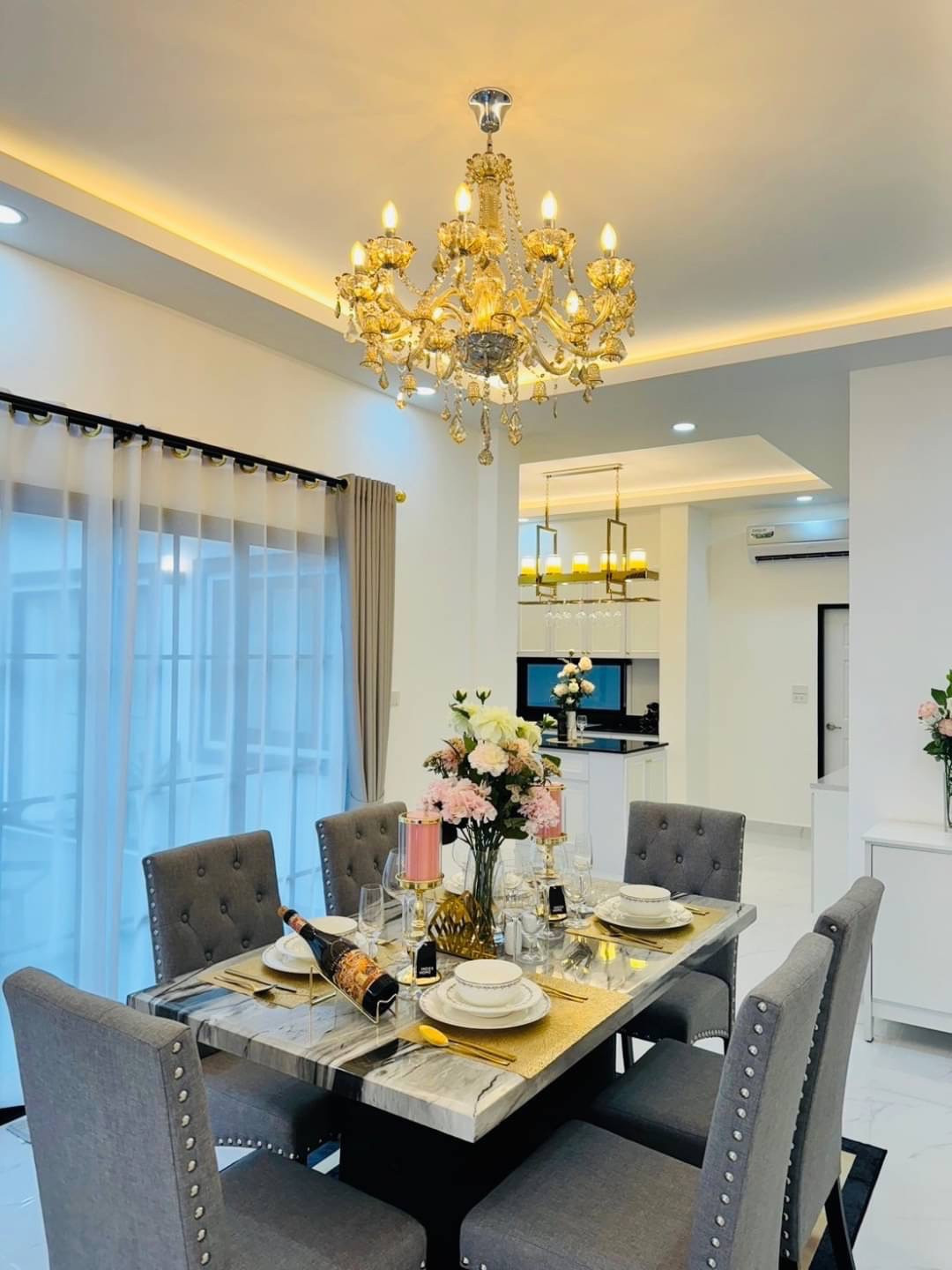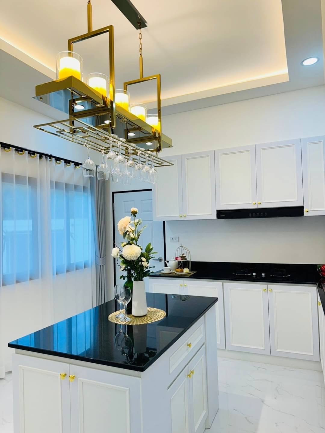 - 1 ห้องครัว+ครัวบิ้วอิน +ไอส์แลนด์+บาร์แขวนแก้วไวน์